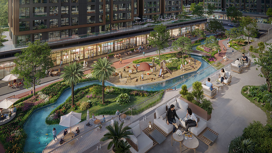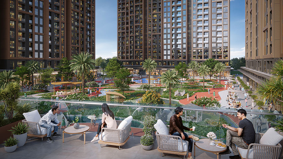 Từ công viên trung tâm đến hệ công viên đan xen giữa các cụm tòa – hệ thống công viên vệ tinh lan tỏa tạo nên một chất sống xanh, nhẹ nhàng và cân bằng ngay trước thềm mỗi tòa.