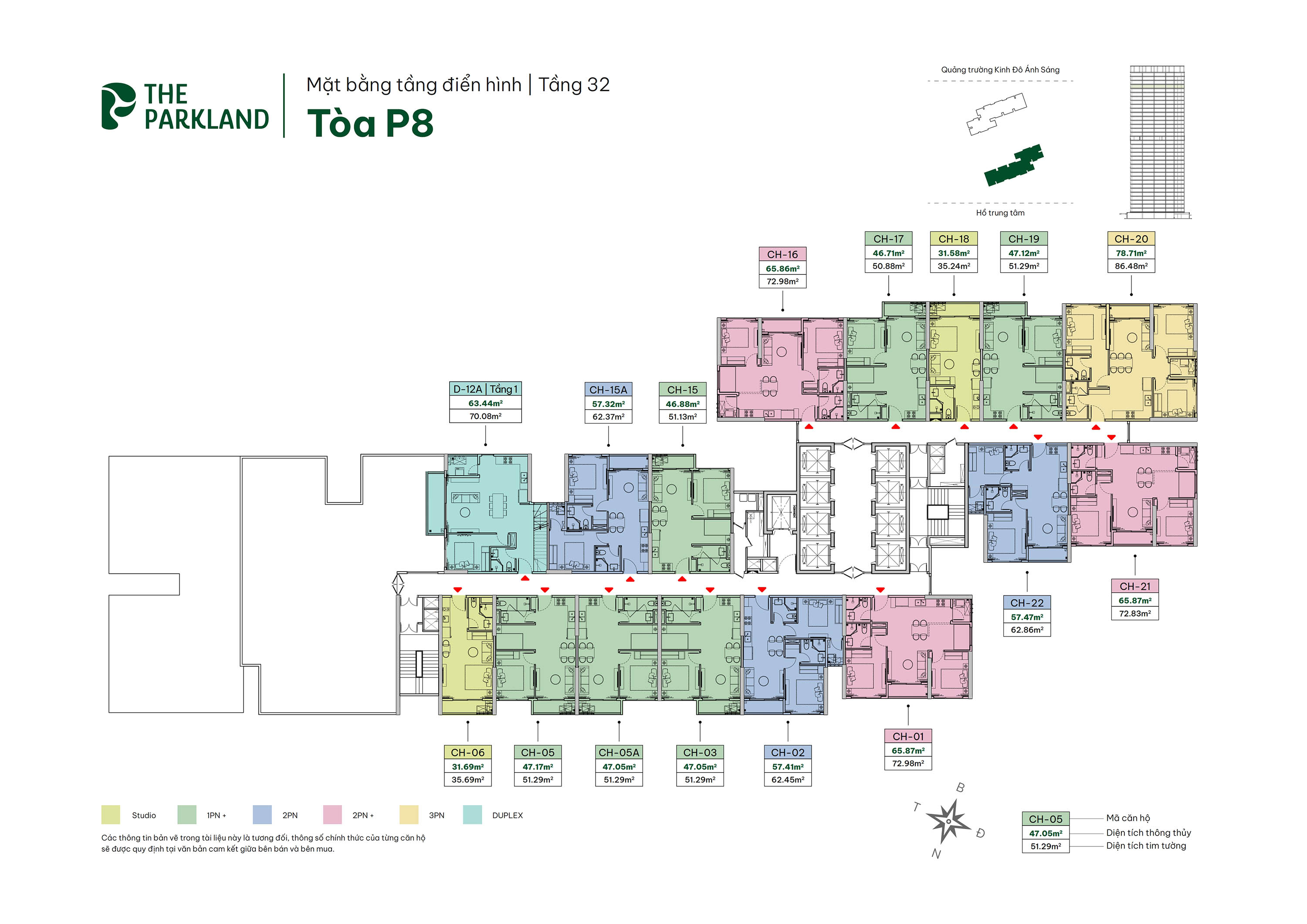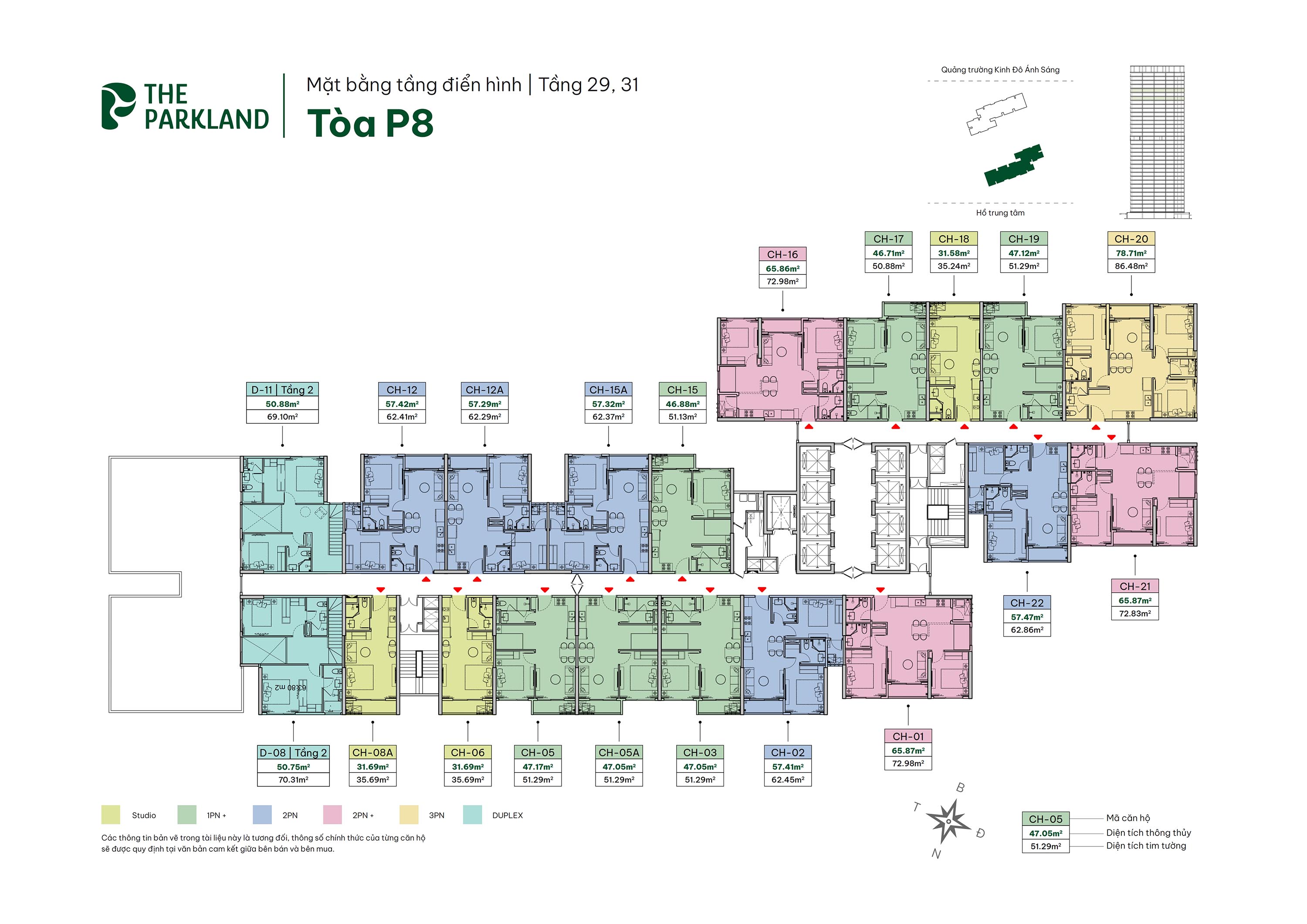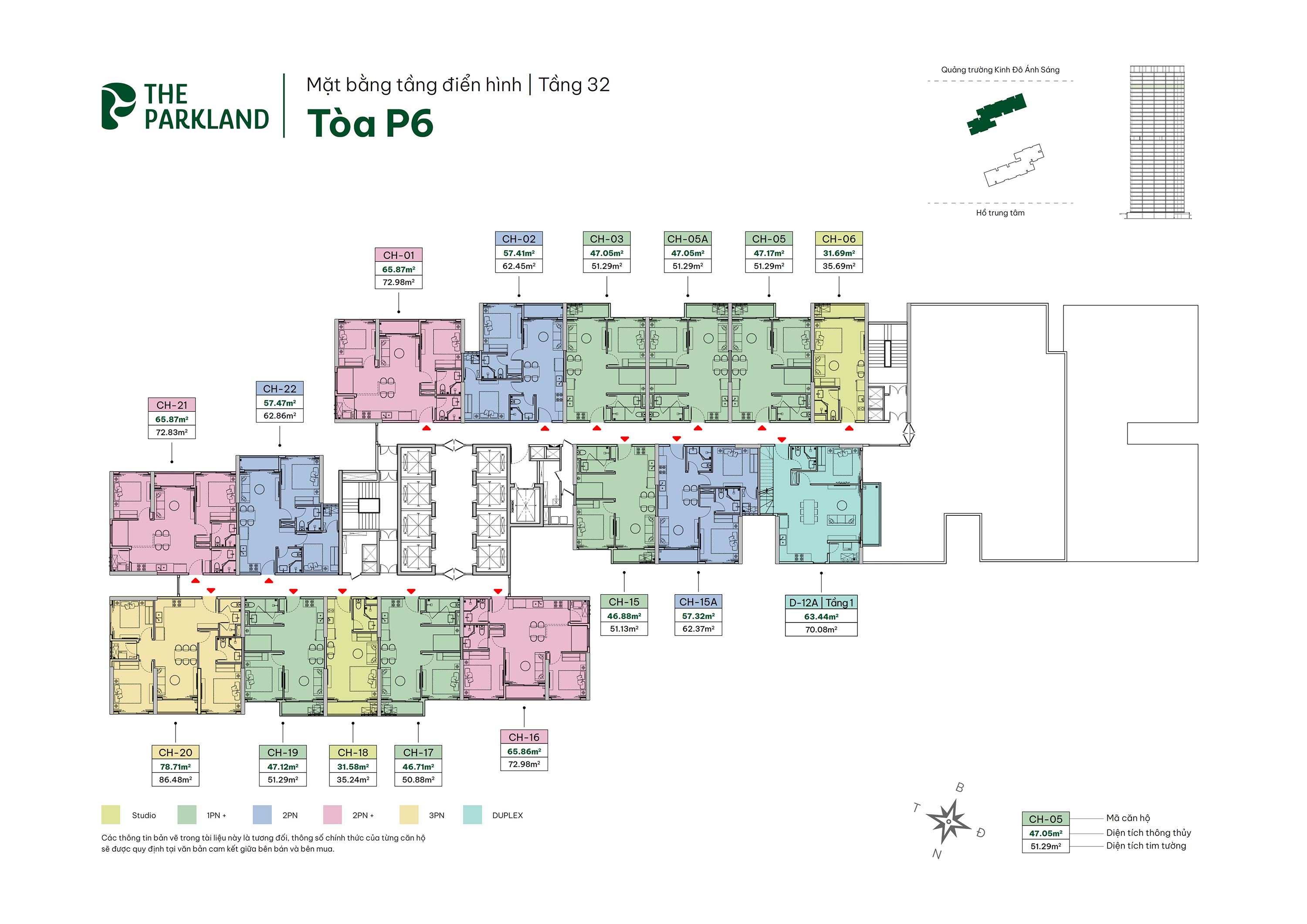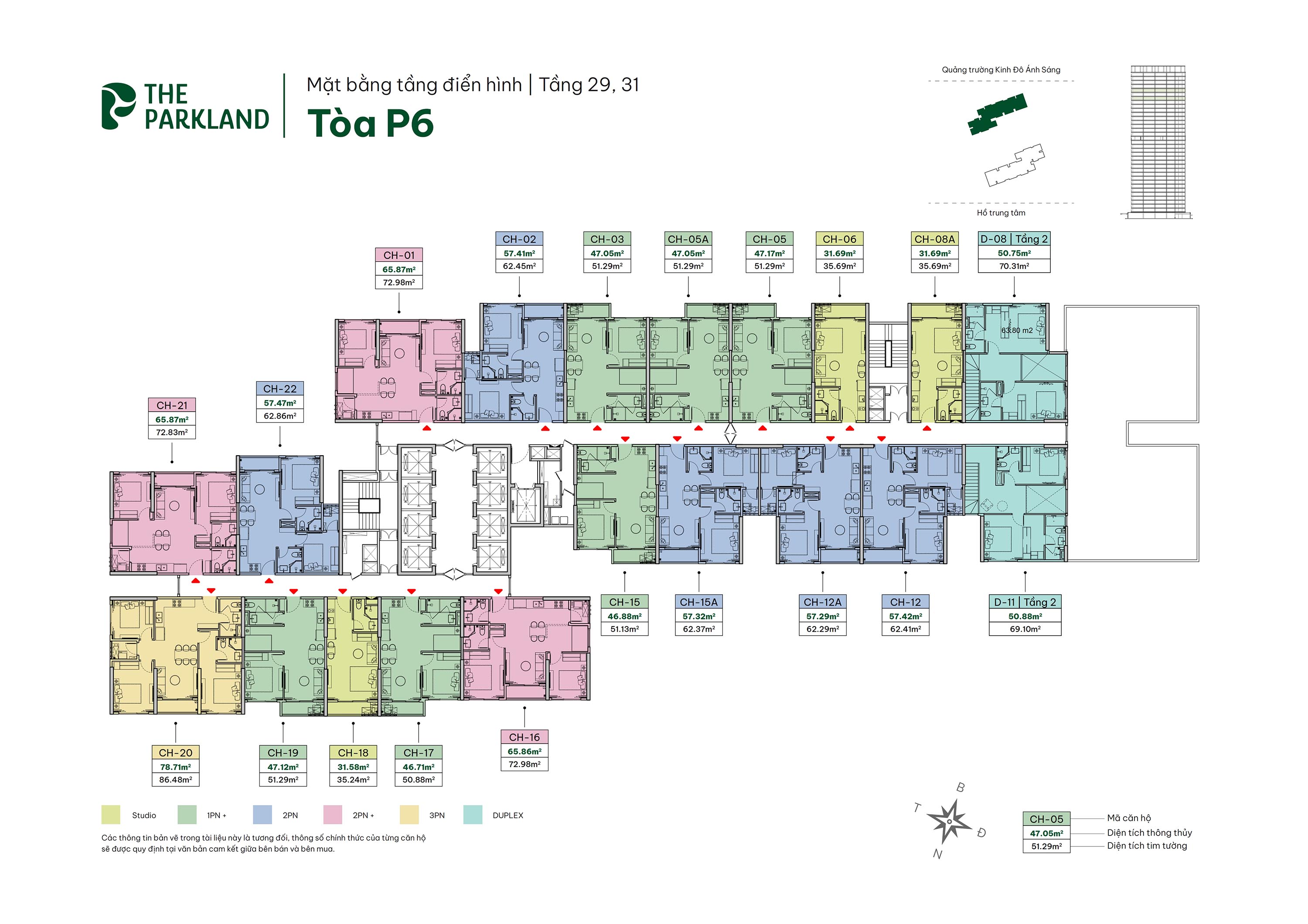 Các loại hình: Studio, 1PN+, 2PN, 2PN+, 3PN, Duplex và Penthouse.